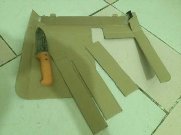 Usando el cuchillo o tijeras, con cuidado corte el cartón en las marcas.