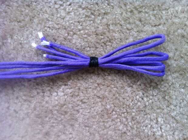 -Coloque el extremo de cable de para arriba entre los pedazos de papel y pegamento para asegurar. Las cuatro piezas se deben pegar con el cable para en el medio.