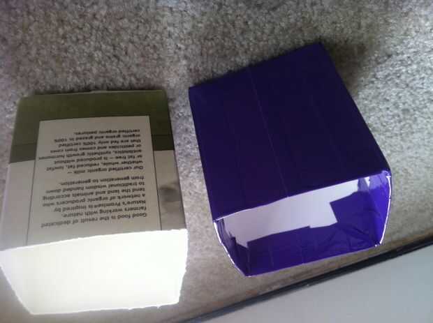 -Cortar el cartón de leche por la mitad. Vamos a usar la parte inferior de la mitad de la caja de cartón de leche.
