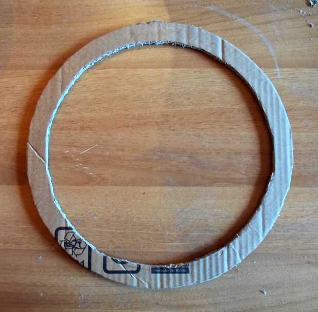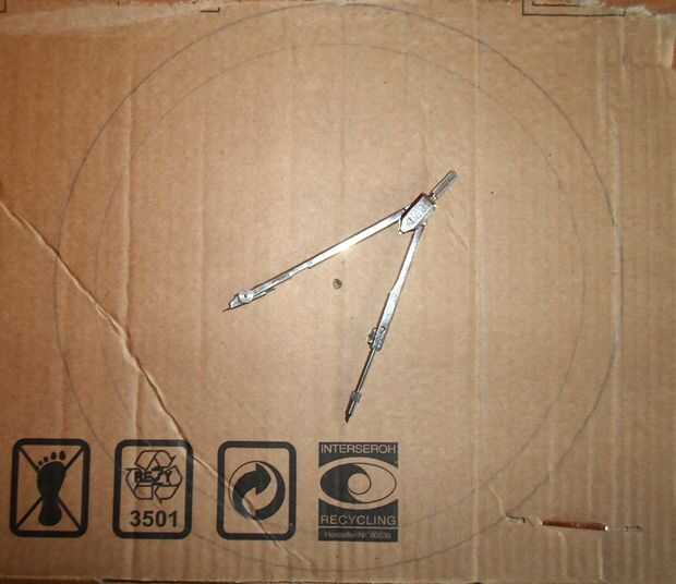 Tomar un compás y dibuja un círculo con un radio de 14cm (5,51 pulgadas) en una cartulina y dibujar un círculo más pequeño dentro de un radio de unos 12cm (4,72 pulgadas).