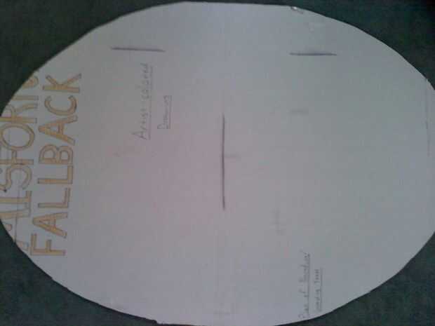 2. delinear la forma del cuerpo utilizando un lápiz (T4) y la curva de la nave (T6) en una hoja de 3' x 2' de cartón (S1). (Las dimensiones del cuerpo será 3' x 2' como se muestra en la imagen de abajo.)