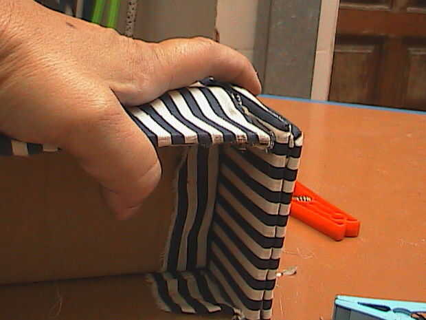 Hacer lo mismo con la parte frontal inferior de la pieza central y el lateral y agárrate. Si utiliza el pegamento PVA, fije las piezas en el lugar correcto con cinta y espere seco.