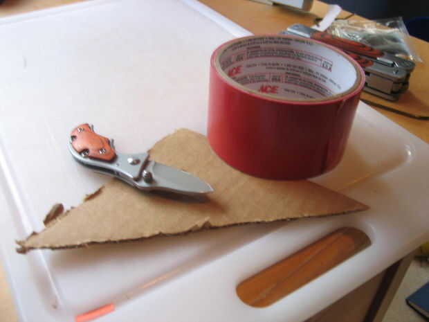 El primer corte que quieres hacer es hacer la cartulina un triángulo. Hacerlo más grande según lo grande que es tu cámara. Hice mío bastante pequeño