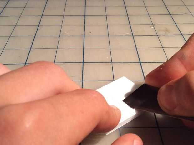Para las superficies de control de la bisagra necesita un cuchillo muy afilado. Tómate tu tiempo. Recuerde sin embargo, si se corta el papel siempre puede utilizar cinta de embalaje un poco para arreglarlo. Usted necesitará el ascensor en la línea de la bisagra ya cortado. Para los alerones debe medir una pulgada desde el borde de fuga del ala, luego cortar la espuma en exceso y los alerones en línea con el borde posterior del ala de la bisagra. El video muestra el proceso de cortar un ángulo para la bisagra.