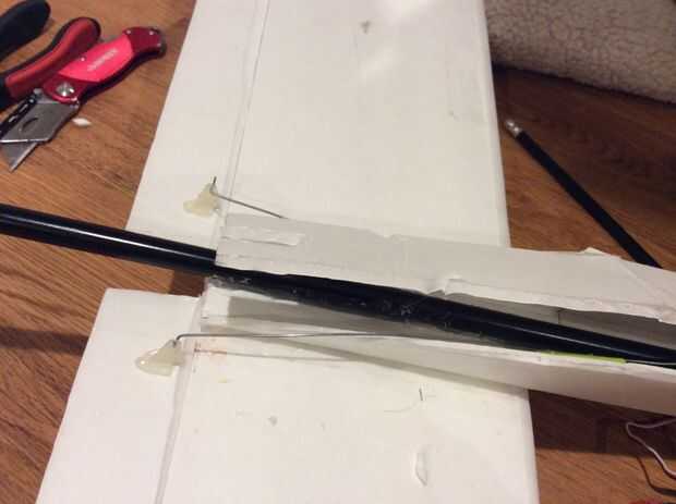 Ahora que todo lo que se hace, es tiempo de terminar su fuselaje. Doble la nariz y unirlo todo, luego pegar la parte inferior del fuselaje hacia los lados. En la parte superior, cortar una trampilla larga de 6 pulgadas y pegar su ESC y BEC en o receptor. No pegar la batería en, use cinta para ahora, usted puede necesitar moverse más adelante.