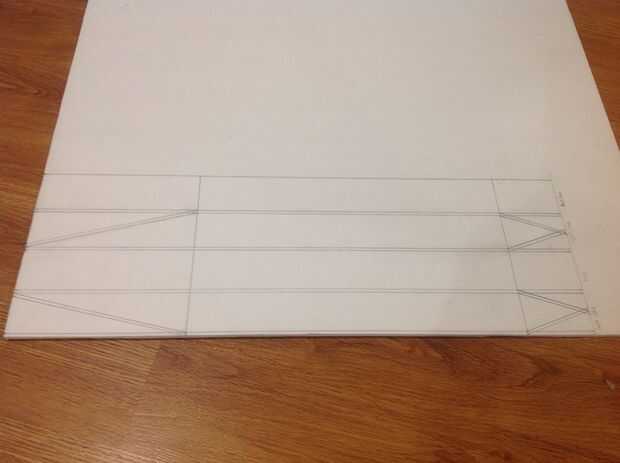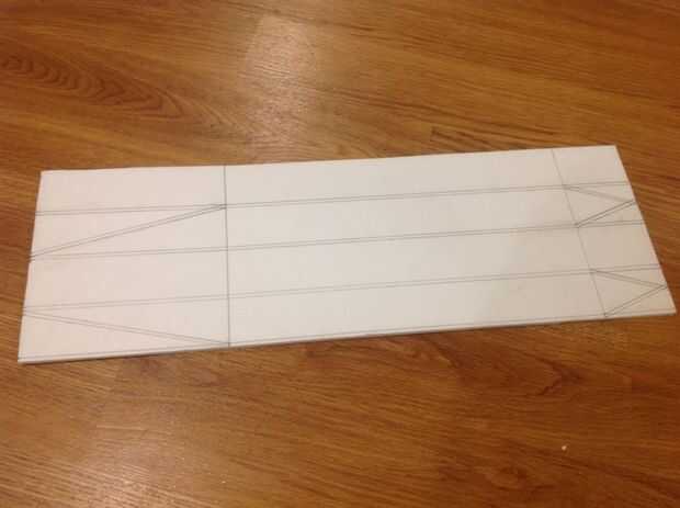 En este paso nos marcará donde cortamos para construir el fuselaje de nuestro avión, ala y cola. Para ahorrar papel, tinta y su tiempo que hizo que todos los cortes rectos y todas las partes fácilmente definidas por las medidas de lado en vez de crear planes tradicionales acabaría por ser más de veinte pedazos de papel. Las medidas son en las fotos y una descripción se da para cada uno. Utilizar dos colores para dibujar los contornos. El rojo en los diagramas es para cortes de score y el negro es para cortes mas.