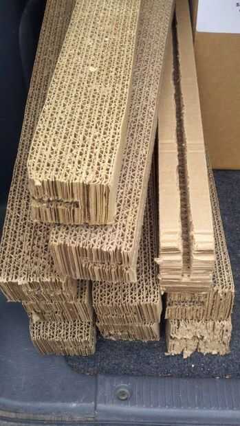 Tuvo la suerte de encontrarse este cartón resistente que yo llamaría "Laminado" tiene este gran estrato de múltiples láminas de cartón corrugados en largo 2" by3" por X' encontré en longitudes de 5', 4' y menos. Se trata de la mayor parte de la Junta-donde sería la base de la espuma en blanco en una placa caras.