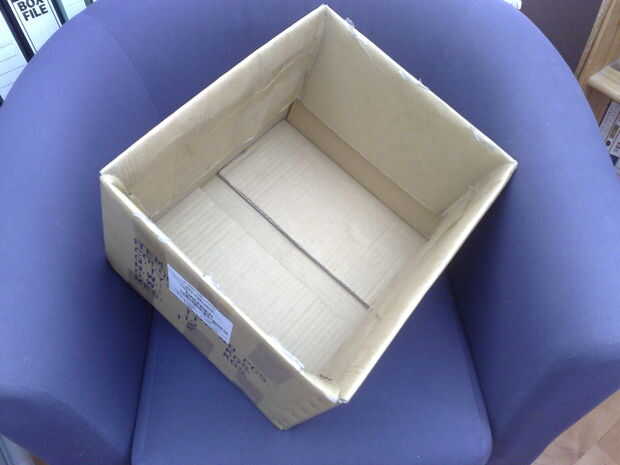 Elegimos una caja de cartón corrugada ya que va a tener lados más fuertes y sobrevivir a las primeras horas de pintura y construcción.