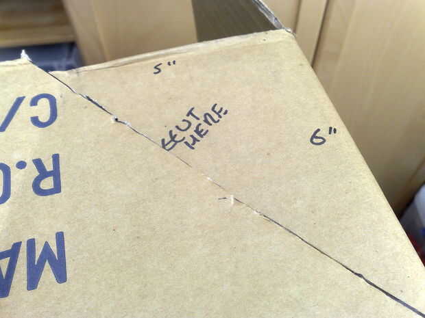 Utilice una regla y medida aprox 6" de la forma en la parte delantera de la caja y marca. ( a )