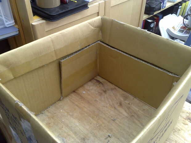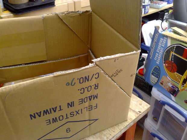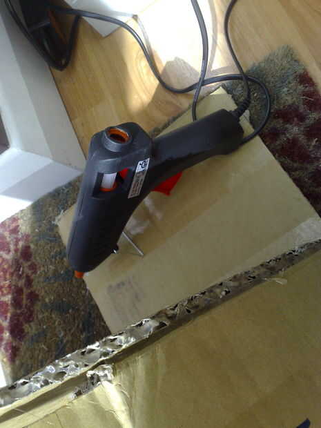 Recortar las aletas a mitad de su longitud doble dentro de la caja y pegar hacia abajo con la pistola de pegamento caliente.