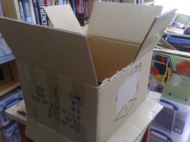 Corte entonces hasta aproximadamente la mitad de la altura y de adelante hacia atrás quitar la aleta completamente. Otra vez doblan estos dentro de la caja y luego pegarlos.