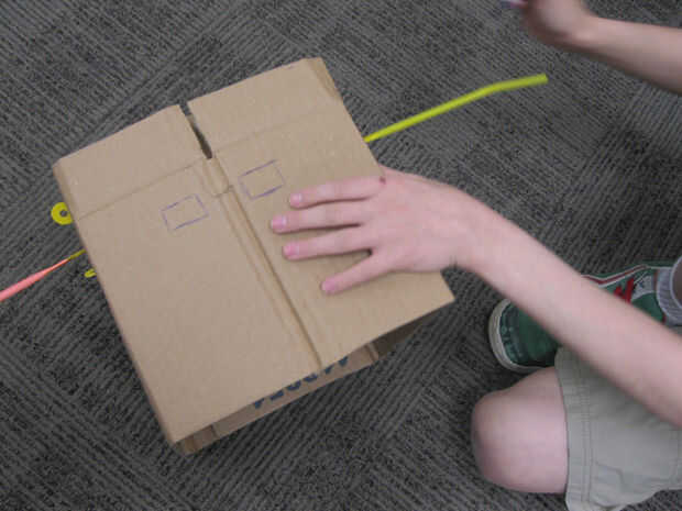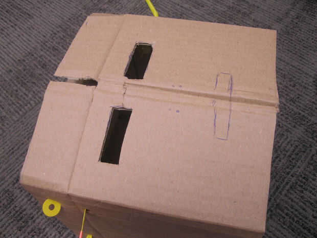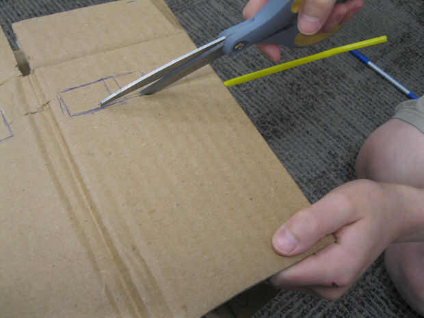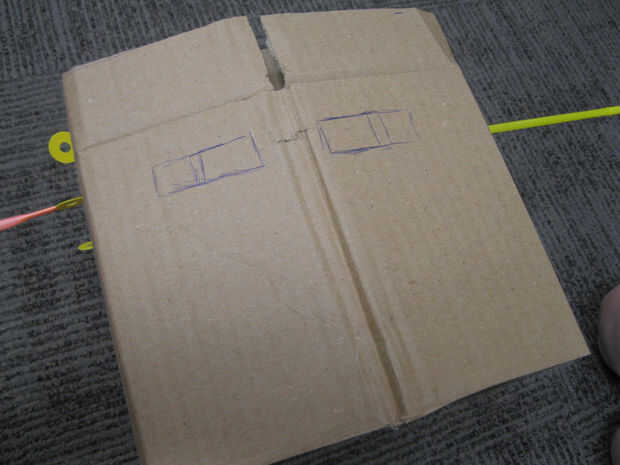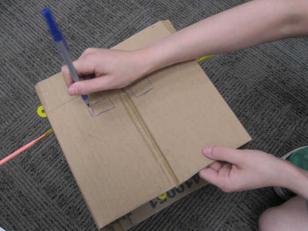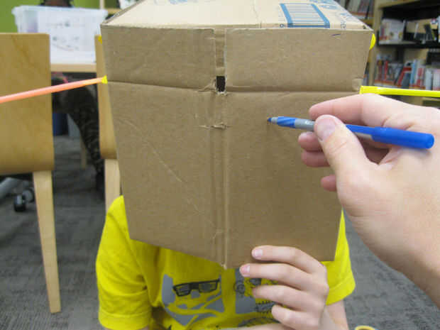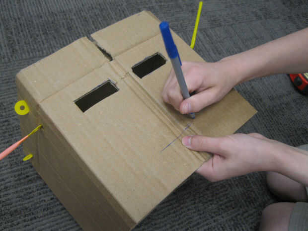 Poner en el casco y pídale a alguien que marque suavemente donde los ojos deben ser. Luego Quítese el casco y dibujar los ojos que desea alrededor de estas marcas. Corte em! Por último, dibujar y cortar la boca.
