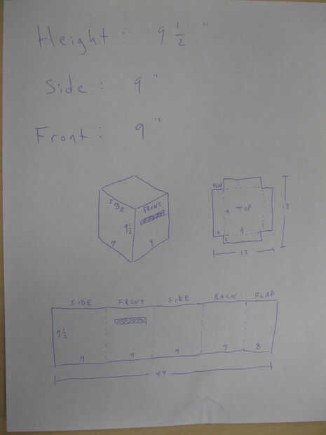 Hacer un dibujo de cómo desea que su casco para ver, con las dimensiones correctas en. Para hacer el casco, necesita dos piezas de cartón: una pieza que componen los 4 lados y una tapa que se fijar a esto. Dibujar estas dos piezas y copiar la longitud correcta de la primera imagen a estos. Asegúrese de incluir las aletas que escondida y atadas a los lados para mantener las cosas Unidas. También es muy útil etiquetar lo que cada área de la cartulina será cuando usted dobla y acoplar todo. Ahora se leen para medir y cortar el cartón!