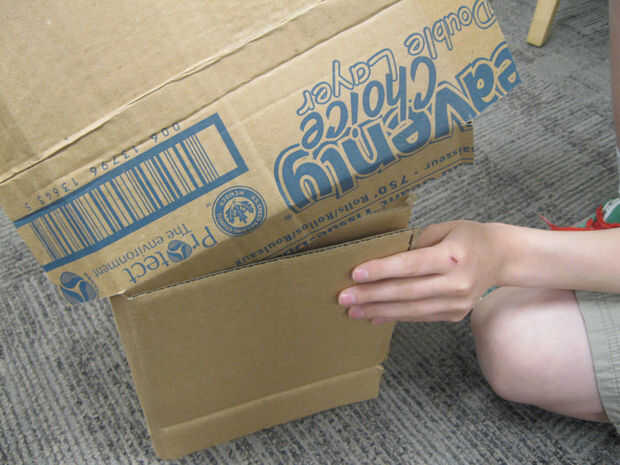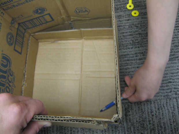 Mantener la sección de lado juntos y empezar a conectar la parte superior. Puede ser más fácil hacerlo con dos personas. Meta en cada una de las cuatro aletas de la parte superior dentro de los lados. Luego, voltear todo, manteniendo la parte superior en los lados.
