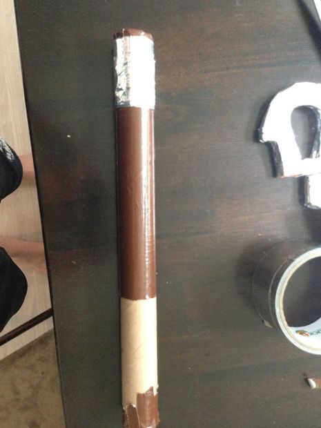 siempre he disfrutado de hacer armas de papel o cartón de nada encuentro. Este es uno de mis favoritos.Materiales-cartulina 2 aletas de aproximadamente 5x10in.rodillo de la cinta de 1 conducto (no necesita todo)cortador de 1 caja1 reglapluma o lápizP
