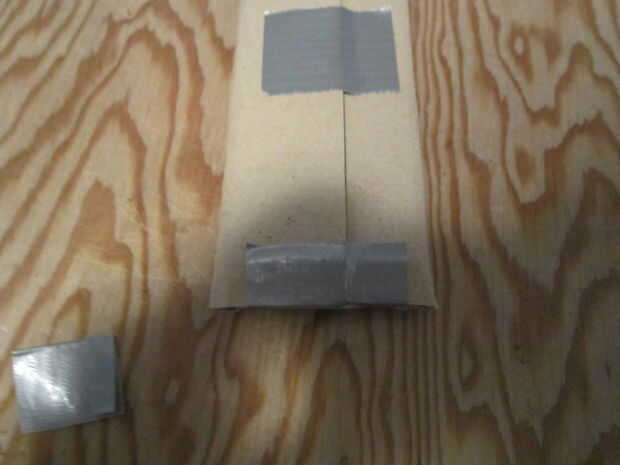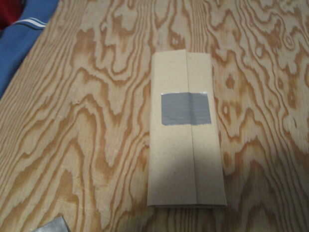 siempre he disfrutado de hacer armas de papel o cartón de nada encuentro. Este es uno de mis favoritos.Materiales-cartulina 2 aletas de aproximadamente 5x10in.rodillo de la cinta de 1 conducto (no necesita todo)cortador de 1 caja1 reglapluma o lápizP