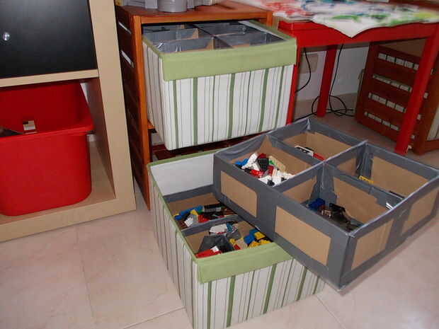 Mi hijo recibió de su primo una bolsa llena de piezas de lego y la caja donde almacena el lego a ser poco para toda esta cantidad de piezas. También, con todo lo que cantidad y clasificación ni orden en todo es imposible encontrar nada. Tenía sólo una opción, construir algunas cajas de almacenamiento para guardar y ordenar las piezas de lego.