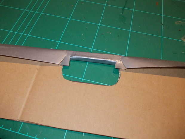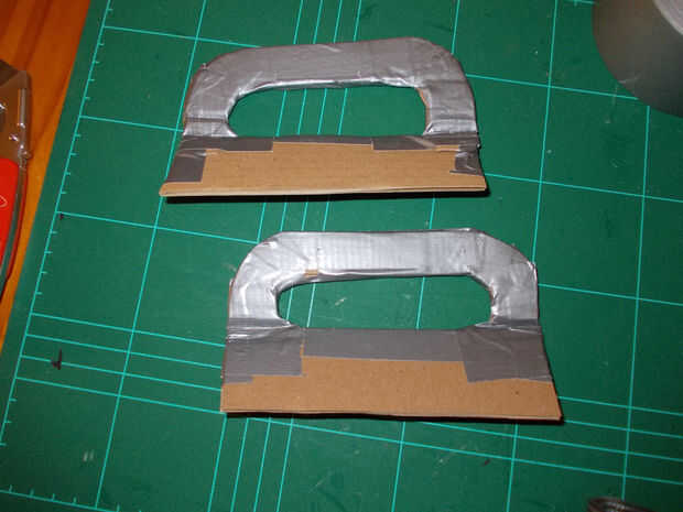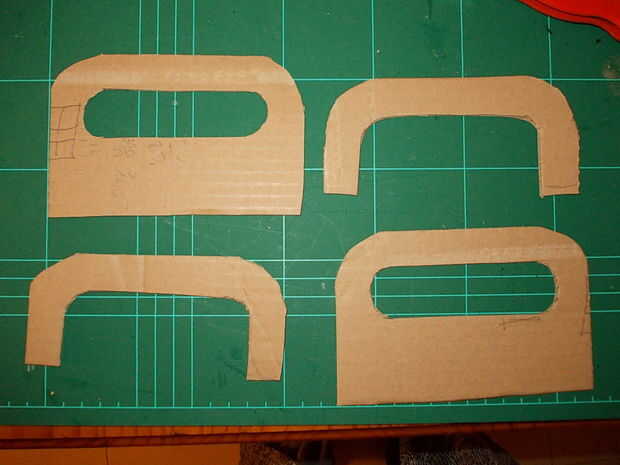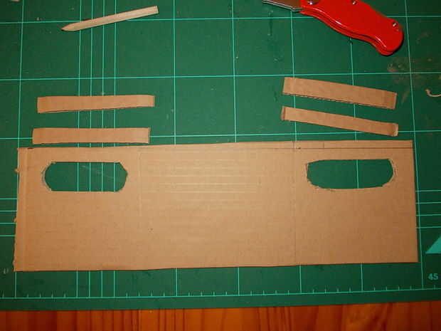 Cortar las cuatro piezas como las que veis en la foto 10 (en este paso). La pieza en forma de "U" es reforzar la "D" en forma de unos. Una vez fijados unos a otros, son más cómodos tirar para arriba y virtualmente irrompible. Estas piezas deben ser dobladas para que puedan caber en el cajón donde va esta caja.