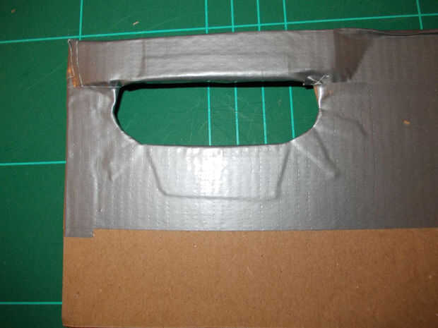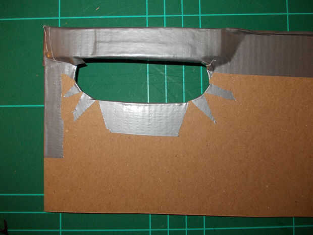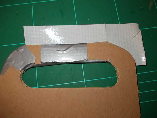 También cortar dos trozos de cartulina de 1cmX9cm. Estas piezas deben estar fijadas en la parte superior de los orificios del controlador para dar a ellos más resistencia y comodidad.