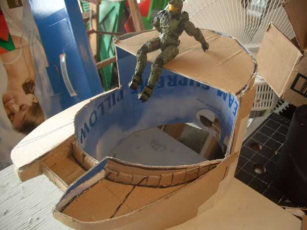 Cualquier momento que el cartón tiene que ir alrededor de una curva, asegúrese de cortar el cartón para que las costillas de corrugación perpendicular a la direcition de la curva. Puede ver esto en el cubo en la primera foto. Las líneas de corrugado van hacia arriba y hacia abajo y recorre la curva. Para hacer una curva suave, es necesario romper la corrugación. Para ello cada extremo de la cartulina y correr hacia adelante y hacia atrás a lo largo del borde de la mesa. Ver la última foto.