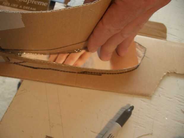 La segunda imagen muestra soporte añadido para dar la profundidad del borde. La tercera me trazo el contorno para hacer la parte superior de la visera y la cuarta foto es una mitad del borde terminado.