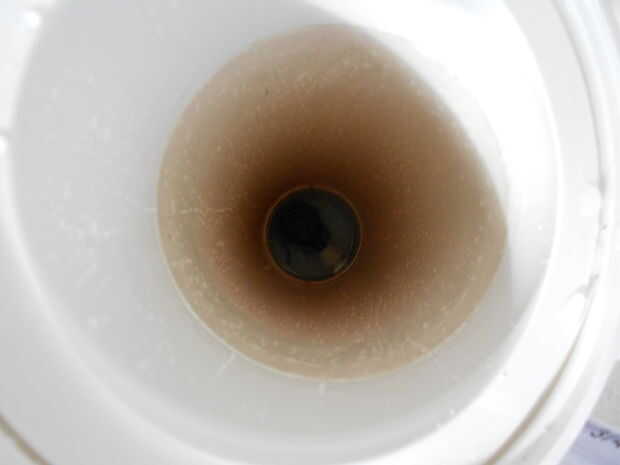 2. Insira o ralo sobre un base de cano cortado, logo acima da bomba;