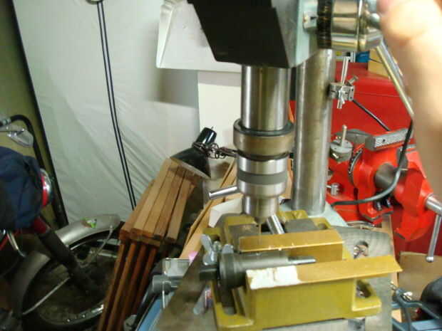 Una vez a través de la capa gris opaca curiosamente fuerte (TM), era tiempo para perforar. No estaba seguro cuánto metal estaba pasando y quería minimizar los pedacitos de metal introduciría dentro de la unidad, de modo que perforé lentamente y con mucho que sopla lejos de virutas.