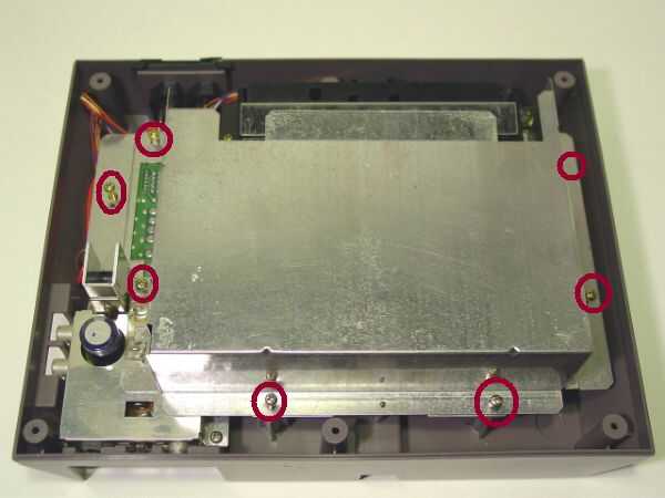 Ahora necesitas quitar los 7 tornillos que sujetan el escudo de RF (plata) al soporte del cartucho (segunda foto). Después de ésos se quitan, luego pueden levantar la cubierta de plata de la consola.