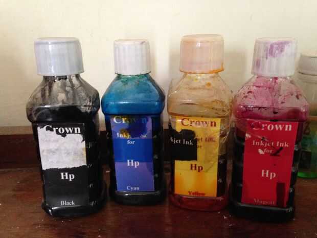 Botellas de tintas (negro, magenta, cian, amarillo)