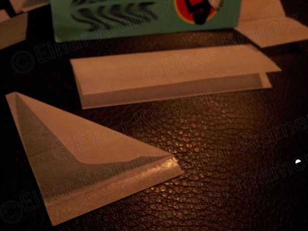 Lamer el borde pegado y plegar. No lamer si han manejado plomo (plomo de los proyectiles) - que puede resultar en intoxicación.