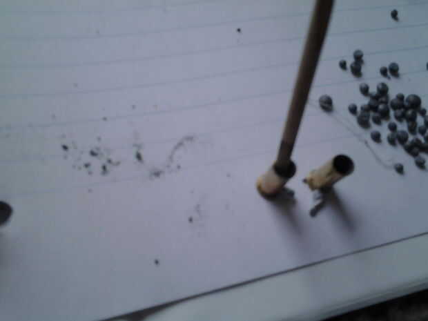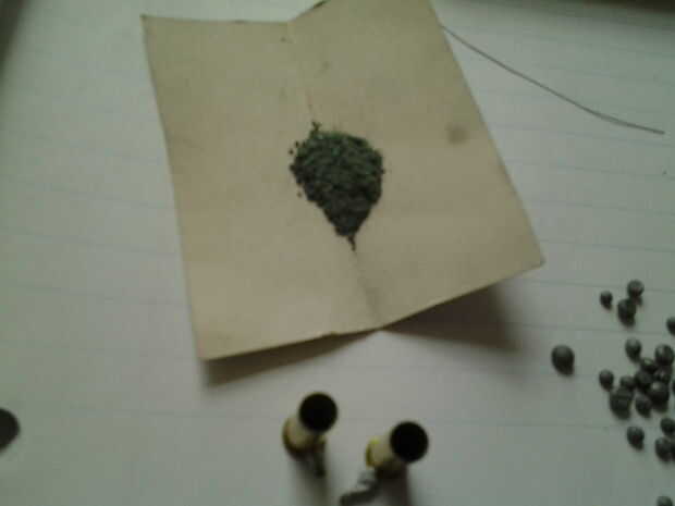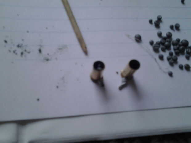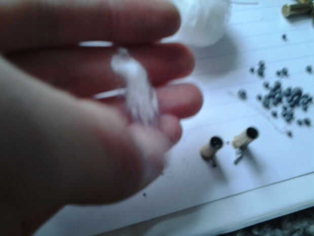 Ahora Vierta el polvo en las cáscaras y empújela hacia abajo con algo, entonces algunos plomo tiro, entonces tomar un poco de algodón rodillo en forma de bola y empuje en la parte superior sellar la bala.