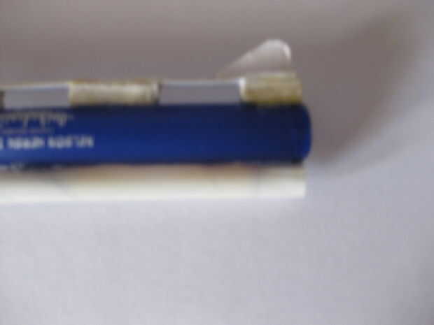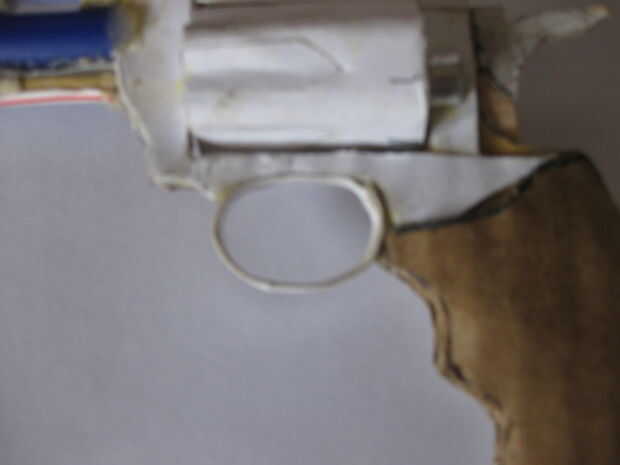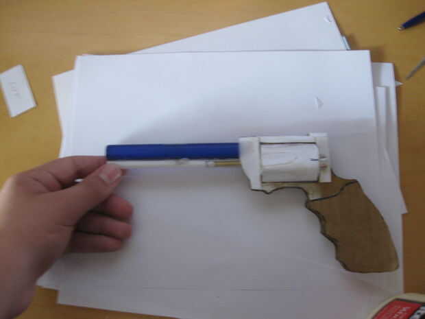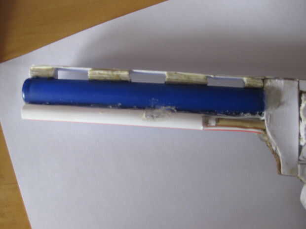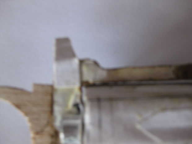 Luego, pegue una 1/2" por 3/4 tira curva entre el barril y el cilindro. Rellenar con pegamento caliente