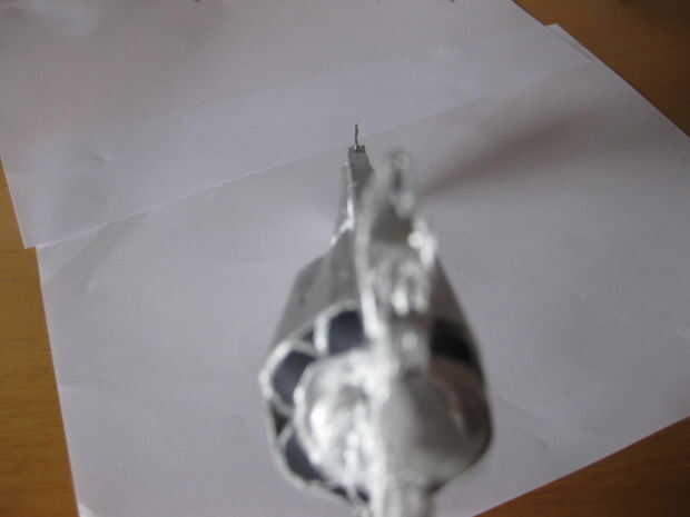 Pegamento en el centro de la parte posterior de la empuñadura, como se muestra en la plantilla.