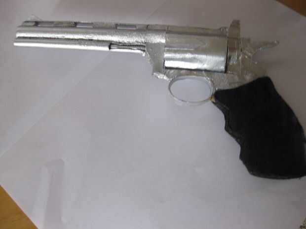 Pintar la parte superior de la plata de la pistola y el negro de mango de agarre.