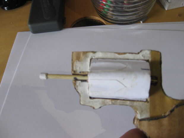Una vez gira libremente, cubrir la empuñadura superior entera en tres capas de cartulina.