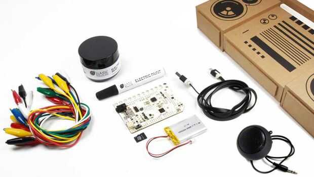 Usted puede simplemente pegar en algunos botones de disposición del papel - pero en realidad - pintura conductora desnuda (y la nueva conductora Touch tablero pelado en Kickstarter) permite a cada uno de esos botones 2D negras hacer una interfaz de usuario programable - bombeo de todo tipo de sonidos increíbles altavoces de montaje en superficie.