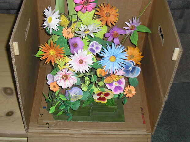 Hacer flores de papel, y para almacenar y transportarlos, necesitaba encontrar un contenedor que encierran y protegen el régimen en tránsito. Por lo tanto una caja especialmente corte y forma.
