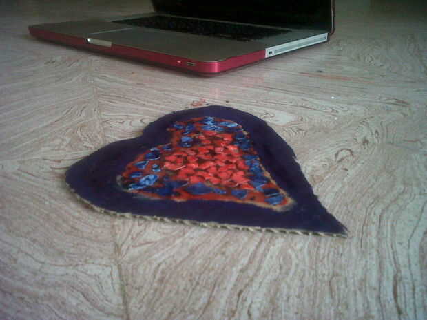 Me recordó a una forma de corazón cuando vi el calendario y la palabra día de San Valentín y ha buscado materiales en mi casa. por suerte encontró los materiales. y fue bosquejando para que cómo obtener el mejor de todos los materiales. de repente una idea provocó fuera de mi mente, finalmente después de varias veces de la planificación y dibujar a la perfección, comenzó a fabricar un corazón de cáscara de huevo, pero la pintura no se aplicó a la cáscara de huevo fácilmente, así que tenemos otra idea. Mezclé la pintura y el pegamento blanco y los colores era vibrante y puede ser pegados en la base sin pegamento adicional.
