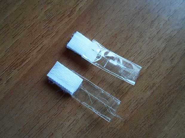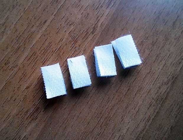 Corte 4 trocitos de velcro, alrededor tan grande como tira de la mitad de la cinta.