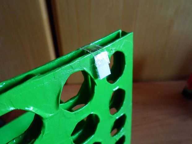 La red para cerrar la curva y pegar el otro lado del velcro a los lados de la caja.