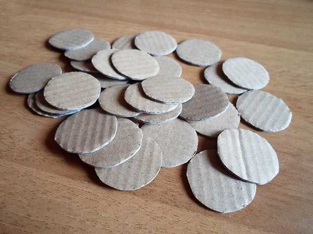 Cortar el círculo y utilizar el disco que obtuvo como guía para dibujar otros 29 discos de cartón.
