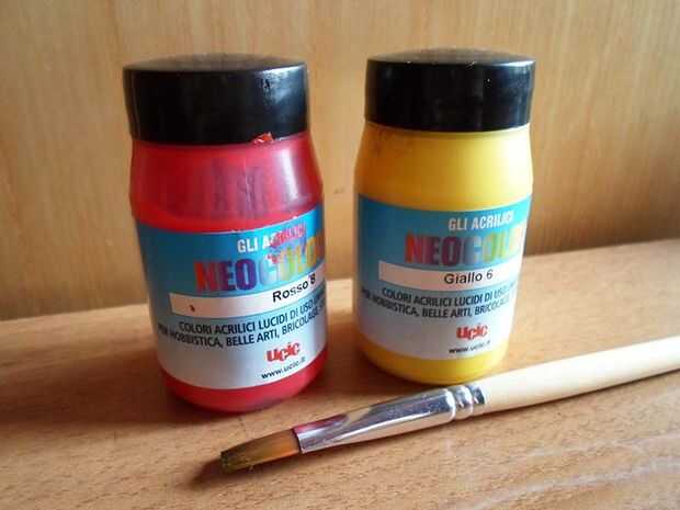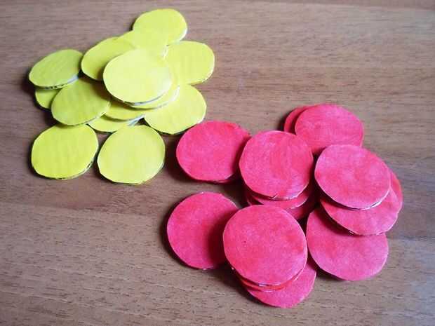 Dividir los discos en 2 grupos (15 a un lado y 15 por el otro) y luego pintar uno de los grupos en rojo y el otro en amarillo.