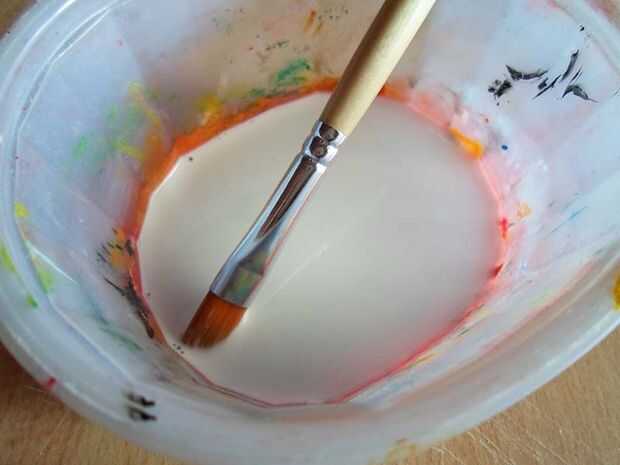 Preparar pegamento blanco en un recipiente pequeño y añadir un poco de agua a la vez a él.