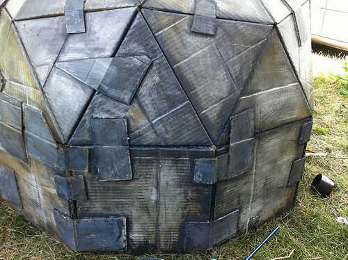 Porque el color base de la cúpula era blanco, allí ahora era un poco demasiado contraste. Si hubiera tenido una pintura plateada en aerosol para comenzar con, yo no habría necesitado el metal en polvo.