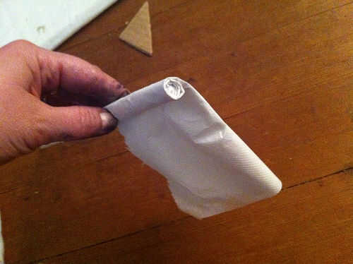 También teníamos un pincel de punta redonda esponja, por lo que envuelve una servilleta alrededor de la ancha de un palillo, asegurado con cinta y utiliza para pintar los círculos.