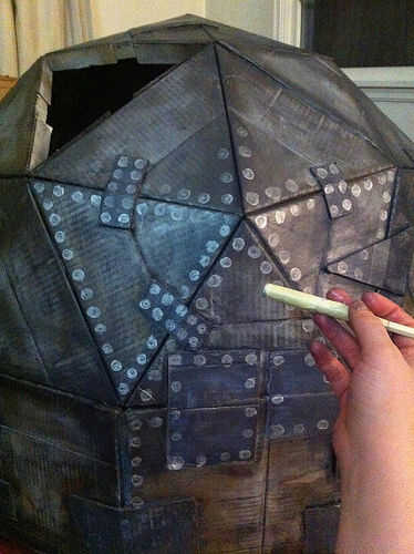 Si nos fijamos en la cúpula de la cima, no hay ninguna dirección verdadera que la luz debe aparecer que provienen, desde he pintado todas las sombras del remache en la parte inferior izquierda. Eso está bien conmigo. Personas son propensas a sólo mirar a un lado de la cúpula a la vez, de todas formas... y los que la mirada hacia abajo en la parte superior y critican la colocación de la sombra pueden hacer su propia cúpula maldita.