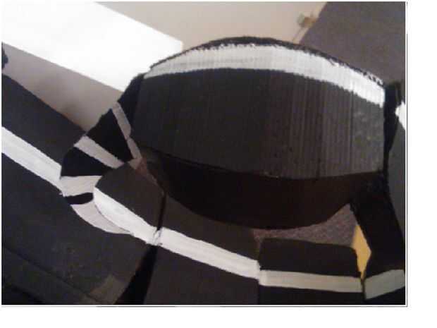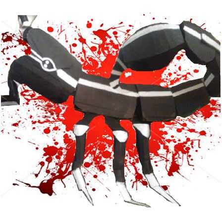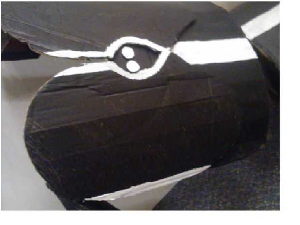 Cuando terminé esta construcción básica entonces hace las pinzas individuales que se extendía desde la cabeza. Una vez que había hecho todas estas cosa es hora de pintar, roció ambos escorpiones negros la pinte con acrílico una nítida línea blanca recta por la mitad y en las puntas de los pies. Aparece los dos escorpiones luchas en algunos bloques blanco contrastantes que dio una imagen de acción muy lleno para el espectador. Al final uno de mis escorpiones fue aproximadamente de 7 pies de largo y el otro pie 3.