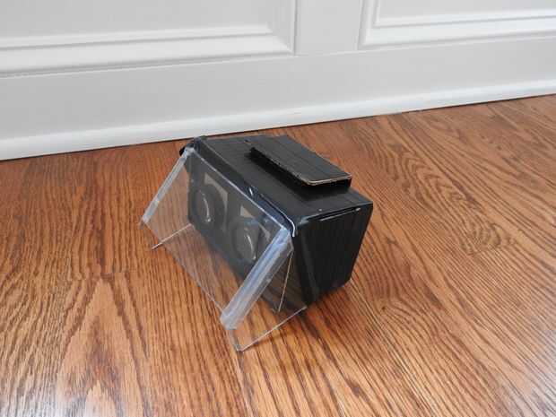 • La pieza larga de vidrio reflexivo debe orientarse en 45 grados en frente de tus ojos para que el vidrio toque la nariz