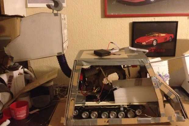 3.) en este punto desmantelamiento la torreta y cortar mucho la carcasa de plástico estaba izquierda solamente con la la parte inferior del marco, rueda de inflexión de gran dentada y el motor que fue conectado a la corona de giro. Con K-9 mirando hacia usted, la torreta se atornillarán a la parte superior del chasis del tanque unos 3 cm del centro en el lado izquierdo del cuerpo. Atornillado al chasis la torreta hasta la torreta sentado a su lado.