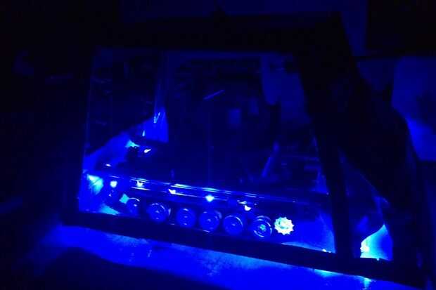 2.) poner el cuerpo en es lado y coloque el LED azul en el interior el cuadro inferior de cuerpo con cinta adhesiva, y asegurándose de que el compartimento de la batería será en la parte posterior del cuerpo.